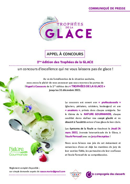Métiers 07 septembre 2021 - 08:13 Le concours est ouvert aux « professionnels » (glaciers, pâtissiers, cuisiniers, boulangers) et aux « amateurs », primés dans chaque catégorie. PDF (624 Ko) Télécharger