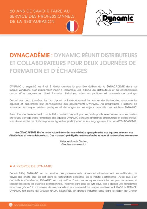 Dynamic a organisé les 4 et 5 février derniers la première édition de la Dynacadémie dans ses locaux vendéens. Cet événement inédit a rassemblé une dizaine de distributeurs et de collaborateurs autour d’un programme alliant formation théorique, mises en pratique et moments de partage.