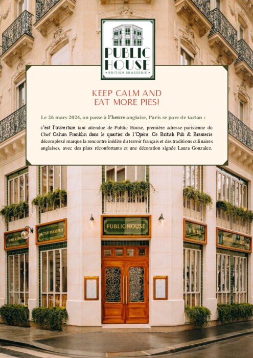Public House, première adresse parisienne du Chef Calum Franklin