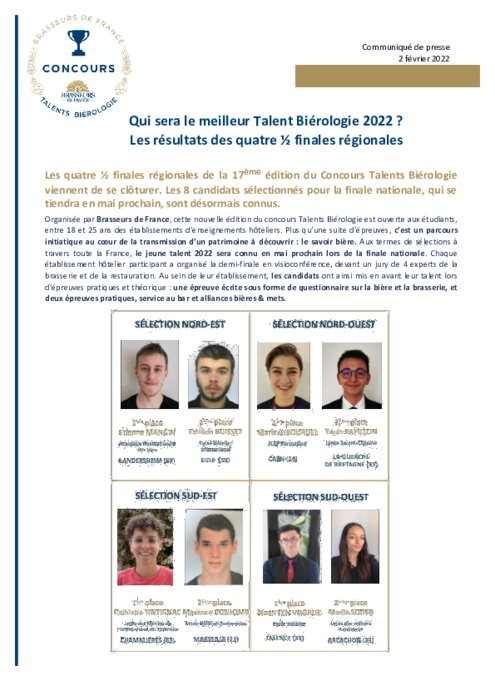 Organisée par Brasseurs de France, cette nouvelle édition du concours Talents Biérologie est ouverte aux étudiants, entre 18 et 25 ans des établissements d’enseignements hôteliers. Plus qu’une suite d’épreuves, c’est un parcours initiatique au cœur de la transmission d’un patrimoine à découvrir : le savoir bière.