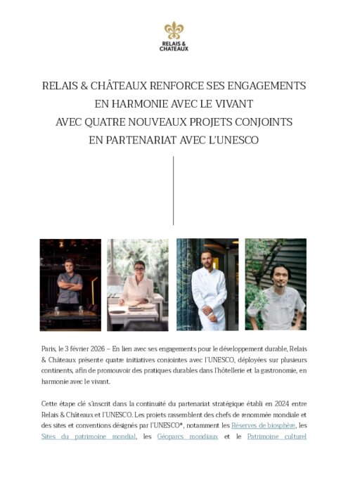 En lien avec ses engagements pour le développement durable, Relais & Châteaux présente quatre initiatives conjointes avec l’Unesco, déployées sur plusieurs continents, afin de promouvoir des pratiques durables dans l’hôtellerie et la gastronomie, en harmonie avec le vivant.