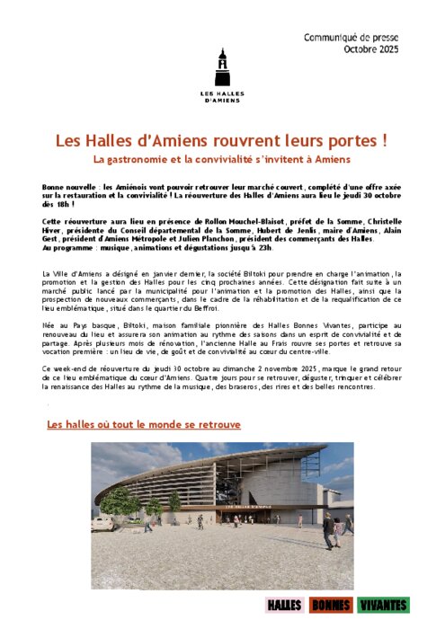 Bonne nouvelle pour les Amiénois : les Halles d’Amiens rouvrent leurs portes ! Après plusieurs mois de travaux, ce lieu emblématique du centre-ville fait peau neuve et retrouve toute sa vitalité avec une offre alliant marché couvert, restauration et convivialité, portée par Biltoki, maison basque pionnière des Halles Bonnes Vivantes.