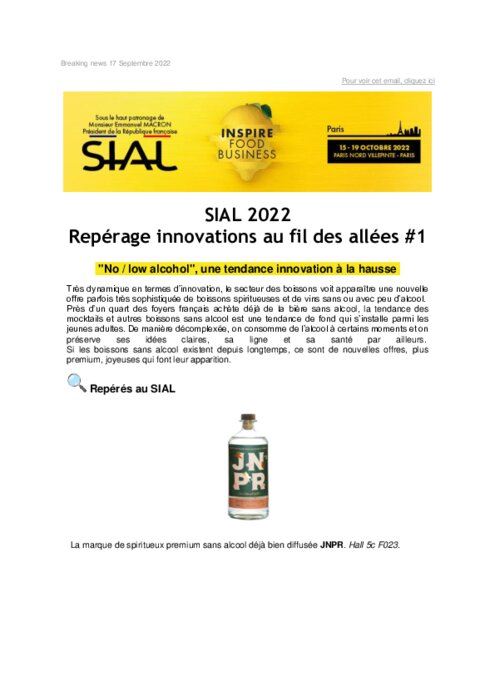 Fournisseurs 17 octobre 2022 - 09:39 Très dynamique en termes d’innovation, le secteur des boissons voit apparaître une nouvelle offre parfois très sophistiquée de boissons spiritueuses et de vins sans ou avec peu d’alcool. PDF (278 Ko) Télécharger