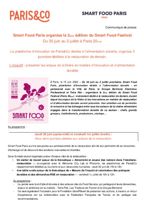 Métiers 15 juin 2022 - 10:12 La plateforme d’innovation de Paris&Co dédiée à l’alimentation durable, organise 3 journées dédiées à la restauration de demain. PDF (198 Ko) Télécharger