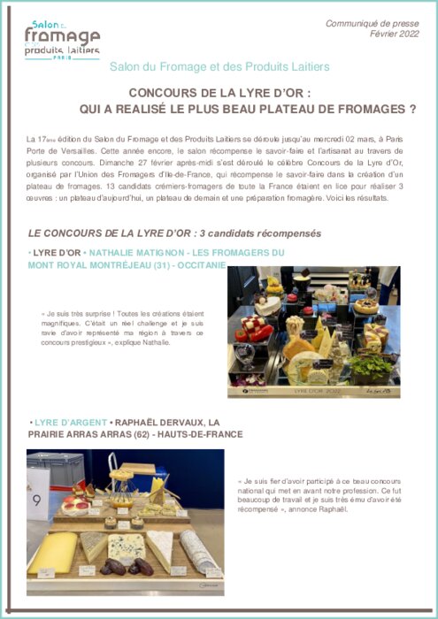 Résultats du Concours Lyre d'Or : qui a réalisé le plus beau plateau de fromages ?