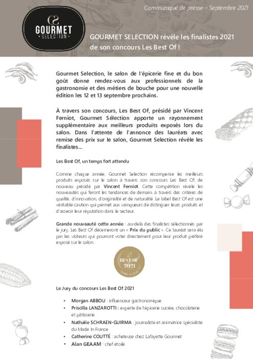 Métiers 06 septembre 2021 - 10:09 Les lauréats de chaque catégorie seront dévoilés sur le salon lors de la remise des prix le lundi 13 septembre à 10h30 - Espace Agora des Experts. PDF (1 Mo) Télécharger