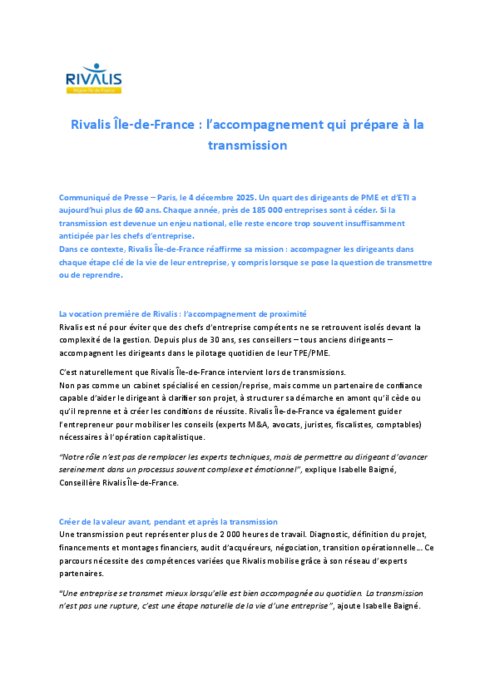 Rivalis est né pour éviter que des chefs d’entreprise compétents ne se retrouvent isolés devant la complexité de la gestion. Depuis plus de 30 ans, ses conseillers – tous anciens dirigeants – accompagnent les dirigeants dans le pilotage quotidien de leur TPE/PME.