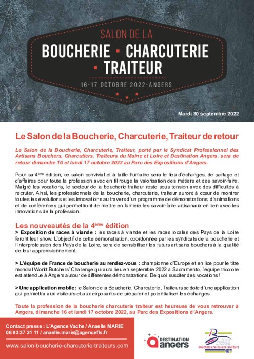 Métiers 13 septembre 2022 - 17:05 Il ouvrira ses portes pour deux jours, les 16 et 17 octobre 2022 au Parc des Expositions d'Angers. PDF (246 Ko) Télécharger