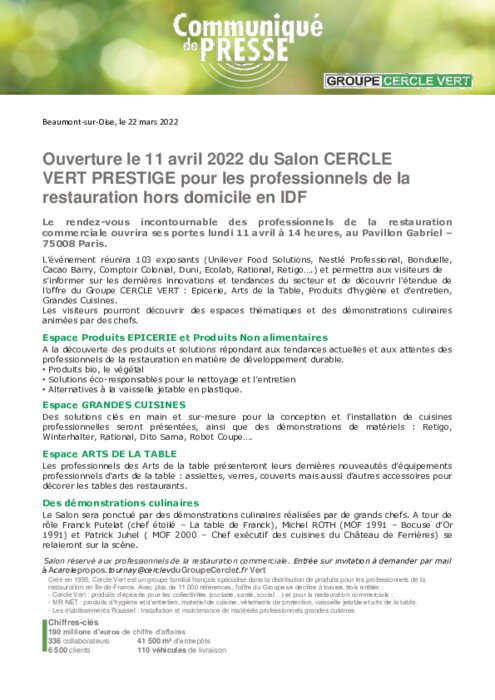 Métiers 22 mars 2022 - 15:56 Le rendez-vous incontournable des professionnels de la restauration commerciale ouvrira ses portes lundi 11 avril à 14 heures, au Pavillon Gabriel –75008 Paris. PDF (239 Ko) Télécharger