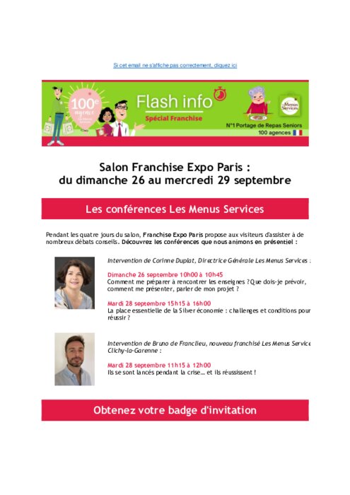 Métiers 14 septembre 2021 - 15:08 Pendant les quatre jours du salon, Franchise Expo Paris propose aux visiteurs d'assister à de nombreux débats conseils. Découvrez les conférences que nous animons en présentiel . PDF (669 Ko) Télécharger