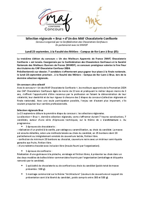 Sélection régionale "Bruz" d’Un des MAF Chocolaterie Confiserie