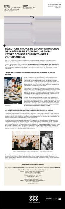 Alors que la gastronomie constitue un véritable pilier de l’identité culturelle française, la Coupe du Monde de la Pâtisserie et le Bocuse d’Or sont deux vitrines incontournables de l’excellence et du savoir-faire français. Les 20 et 21 octobre 2025, Paris accueillera les sélections France de la Coupe du Monde de la Pâtisserie et du Bocuse d’Or. Ces deux compétitions incarnent bien plus qu’un simple concours : elles permettent de révéler les futurs représentants de la gastronomie française et constituent une étape clé dans leur renommée sur la scène internationale.