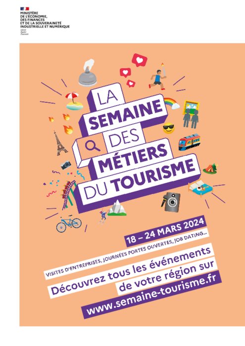 Susciter des vocations et créer des opportunités professionnelles pour les jeunes et les demandeurs d’emplois. 2300 évènements, soit près de 1000 évènements de plus que lors de la précédente édition, pour découvrir le tourisme, ses métiers et ses formations, partout en France Instituée sous l’égide d’Olivia Grégoire, ministre déléguée chargée des Entreprises, du Tourisme et de la Consommation, dans le cadre du plan Destination France, et organisée par la Direction générale des Entreprises (DGE) la Semaine des métiers du tourisme a pour vocation de faire découvrir au grand public, et plus particulièrement aux jeunes et aux demandeurs d’emplois, la grande diversité des professions et formations du tourisme et les nombreuses opportunités de carrière et de montée en compétences possibles, via la rencontre avec des professionnels de la filière.