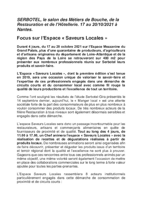 L’Espace « Saveurs Locales », dont la première édition s’est tenue en 2019, sera une occasion unique de valoriser le savoir-faire et l’expertise de ces professionnels engagés dans une démarche de circuits courts et du consommer local avec comme fil rouge la qualité de leurs productions et l’excellence de tout un territoire.