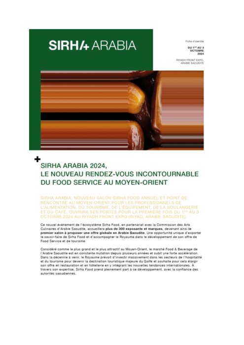 Sirha Arabia, nouveau salon Sirha Food annuel et point de rencontre au Moyen-Orient pour les professionnels de l'alimentation, du tourisme, de l'équipement, de la boulangerie et du café, ouvrira ses portes pour la première fois du 1er au 3 octobre.