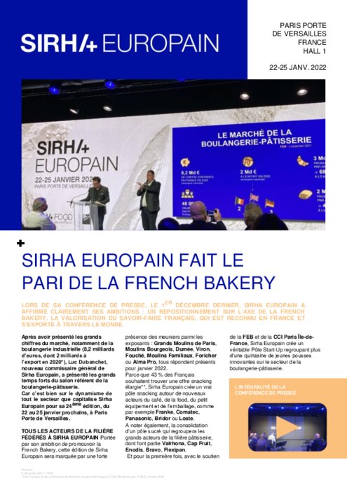 Métiers 06 décembre 2021 - 11:47 Luc Dubanchet, nouveau commissaire général de Sirha Europain, a présenté les grands temps forts du salon référent de la boulangerie-pâtisserie. PDF (383 Ko) Télécharger