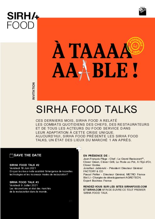 Pour celles et ceux qui n'ont pas pu assister au premier Sirha Food Talk - Les leçons de la crise 1 an après, la relance économique pour la restauration - qui s'est tenu vendredi dernier, vous pouvez accéder au replay directement sur le site Sirha Food ou sur YouTube.