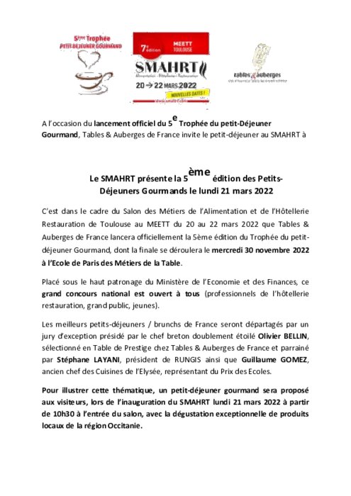 SMAHRT : 5ème édition des Petits-Déjeuners Gourmands