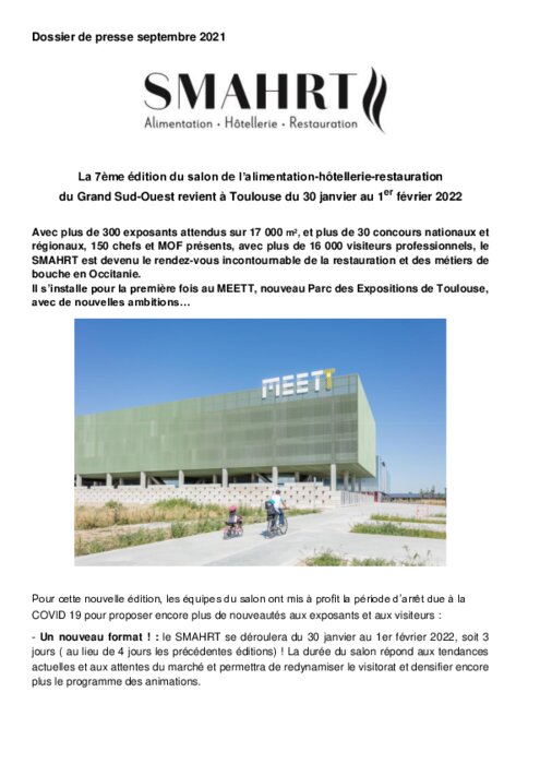 Avec plus de 300 exposants attendus sur 17 000 m2, et plus de 30 concours nationaux et régionaux, 150 chefs et MOF présents, avec plus de 16 000 visiteurs professionnels, le SMAHRT est devenu le rendez-vous incontournable de la restauration et des métiers de bouche en Occitanie.