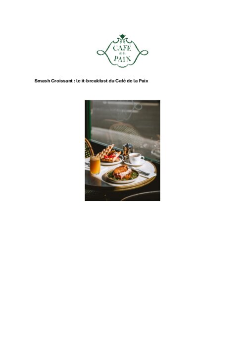 Au Café de la Paix, institution mythique au cœur de Paris, le petit-déjeuner adopte une version furieusement désirable. Nouveau rendez-vous gourmand des matinées parisiennes : le Smash Croissant, un croissant feuilleté, doré et délicatement smashé, pensé comme la nouvelle obsession food de la saison.