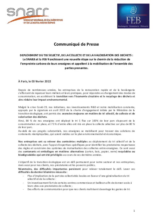 Le SNARR et la FEB franchissent une nouvelle étape sur le chemin de la réduction de l’empreinte carbone de leurs enseignes et appellent à la mobilisation de l’ensemble des parties prenantes.