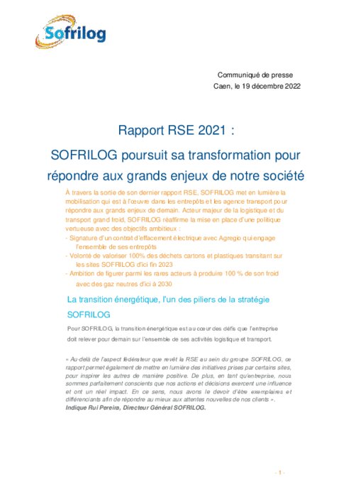SOFRILOG poursuit sa transformation pour répondre aux grands enjeux de notre société