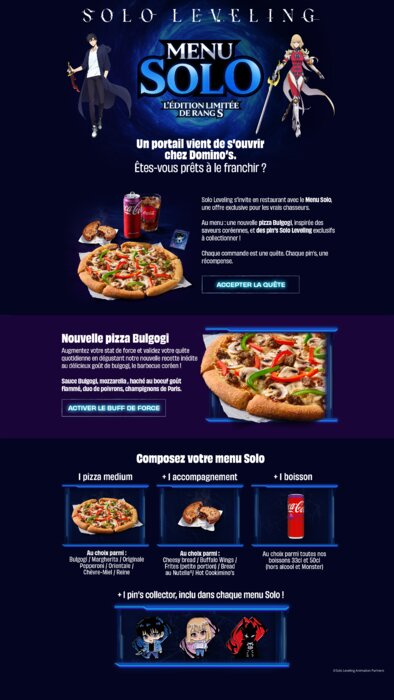 Pour la première fois en France, la licence Solo Leveling s’associe à un acteur food, à travers une collaboration inédite avec Domino’s Pizza. Pensée comme une véritable extension de l’univers du webtoon, cette opération prend la forme d’une édition limitée disponible du 22 au 18 mai .