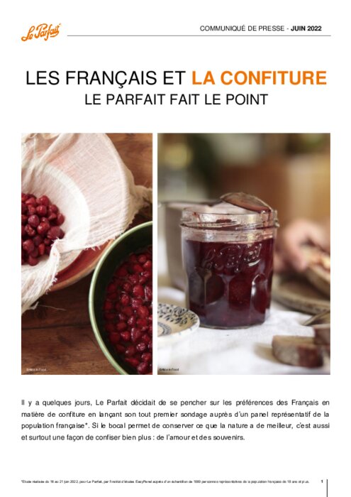 Sondage 2022 : les Français et la confiture (Le Parfait)