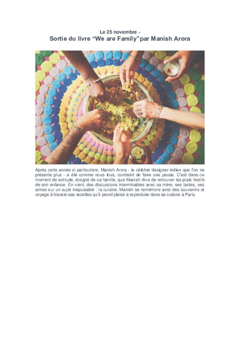 Après cette année si particulière, Manish Arora - le célèbre designer indien que l’on ne présente plus - a été comme nous tous, contraint de faire une pause. C’est dans ce moment de solitude, éloigné de sa famille, que Manish rêve de retrouver les plats festifs de son enfance.