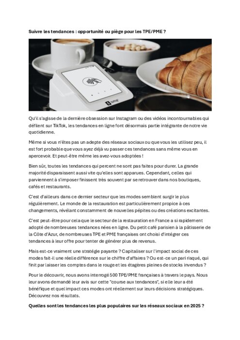 Suivre les tendances : opportunité ou piège pour les TPE/PME ? (Etude Sumup)