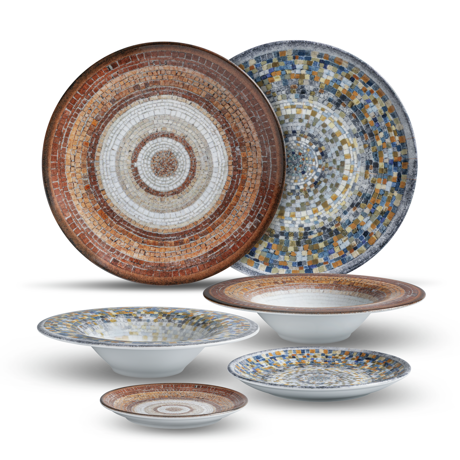 Terra Mosaic est un nouveau service en porcelaine qui se distingue par deux très beaux motifs mosaïque réalisés en impression numérique. Proposés en deux variantes – l’une dans une palette chaleureuse de terracotta, beige et brun, l’autre dans un ensemble frais bleu, blanc et orange – ces motifs se combinent très bien ensemble pour créer des tables à la fois modernes et raffinées.