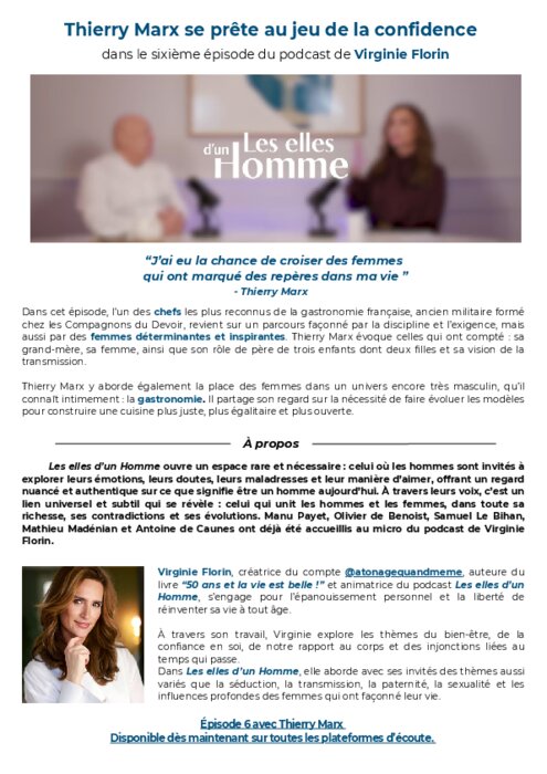 Thierry Marx se confie dans Les elles d'un Homme, le podcast de Virginie Florin