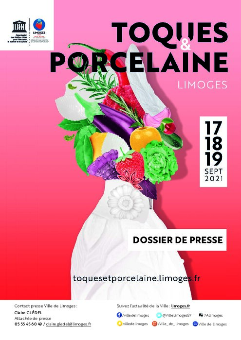 Métiers 07 juillet 2021 - 17:02 Ville créative de l’UNESCO, la Ville de Limoges organise, les 17, 18 et 19 septembre , la 9e édition de sa biennale Toques & Porcelaine avec, comme invité d’honneur, le chef triplement étoilé Michel Troisgros. PDF (6 Mo) Télécharger