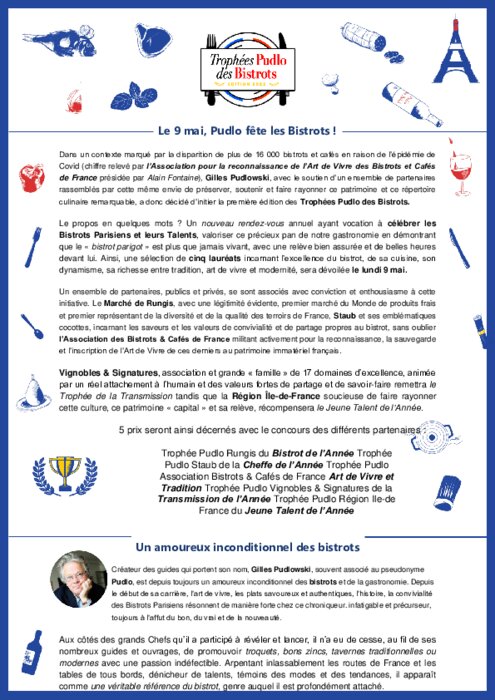 Gilles Pudlowski lance la 1ère édition des Trophées Pudlo des Bistrots, un événement célébrant les Bistrots Parisiens et leurs Talents.