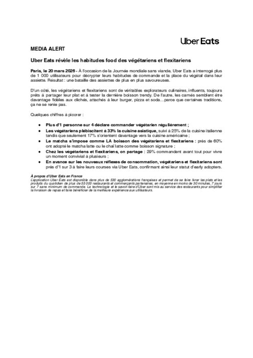 À l’occasion de la Journée mondiale sans viande, Uber Eats a interrogé plus de 1 000 utilisateurs pour décrypter leurs habitudes de commande et la place du végétal dans leur assiette. Résultat : une bataille des assiettes de plus en plus savoureuses.