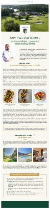 Pour le Saint-Malo Golf Resort, une double labellisation Le Club Golf et un calendrier estival déjà bien rempli… en 2024, les passionnés de la petite balle blanche ont rendez- vous au Saint-Malo Golf Resort, là où la gastronomie et le challenge du jeu s’harmonisent pour une expérience inoubliable.