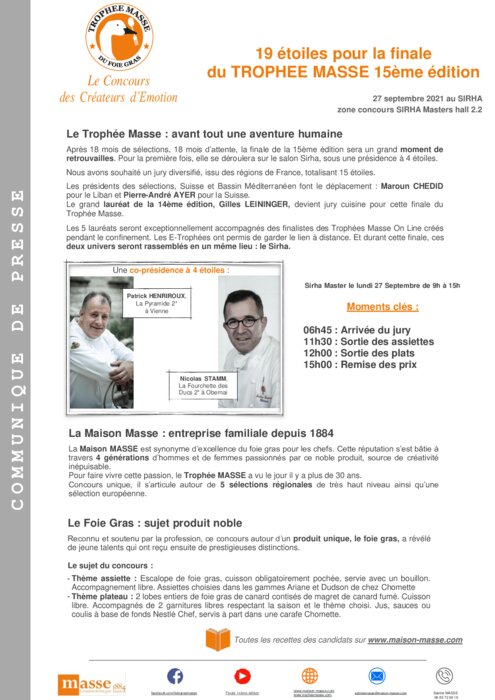 Une présidence à 4 étoiles pour la Finale du Trophée Masse