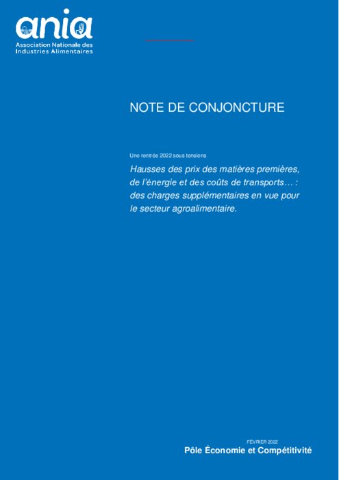 Une rentrée 2022 sous tension pour l'agroalimentaire (Note conjoncture économique ANIA)