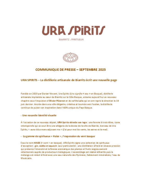 Fondée en 2019 par Dorian Vincent, Ura Spirits (Ura signifie « eau » en Basque), distillerie artisanale implantée au cœur de Biarritz sur la Côte Basque, entame aujourd’hui un nouveau chapitre sous l’impulsion d’Olivier Pézeron et de sa fille Laïla qui en ont repris la direction le 19 juin dernier. Ancrée dans une ville élégante, créative et tournée vers l’océan, la distillerie continue de puiser son inspiration dans l’ADN unique du Pays Basque.