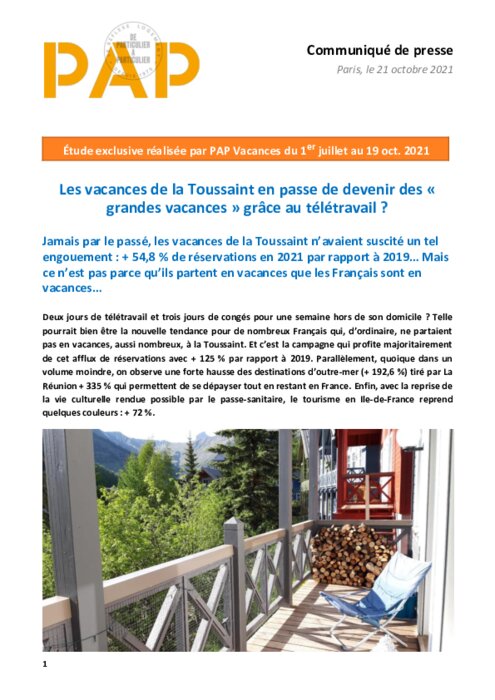 Jamais par le passé, les vacances de la Toussaint n'avaient suscité un tel engouement : + 54,8 % de réservations en 2021 par rapport à 2019... Mais ce n'est pas parce qu'ils partent en vacances que les Français sont en vacances...