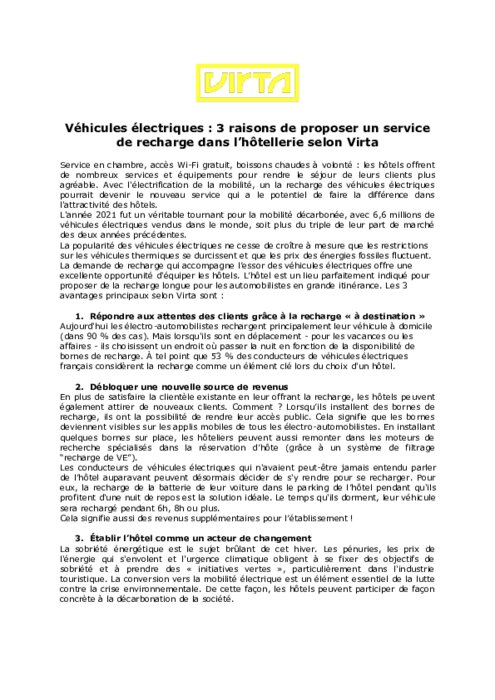 Service en chambre, accès Wi-Fi gratuit, boissons chaudes à volonté : les hôtels offrent de nombreux services et équipements pour rendre le séjour de leurs clients plus agréable. Avec l'électrification de la mobilité, un la recharge des véhicules électriques pourrait devenir le nouveau service qui a le potentiel de faire la différence dans l'attractivité des hôtels.