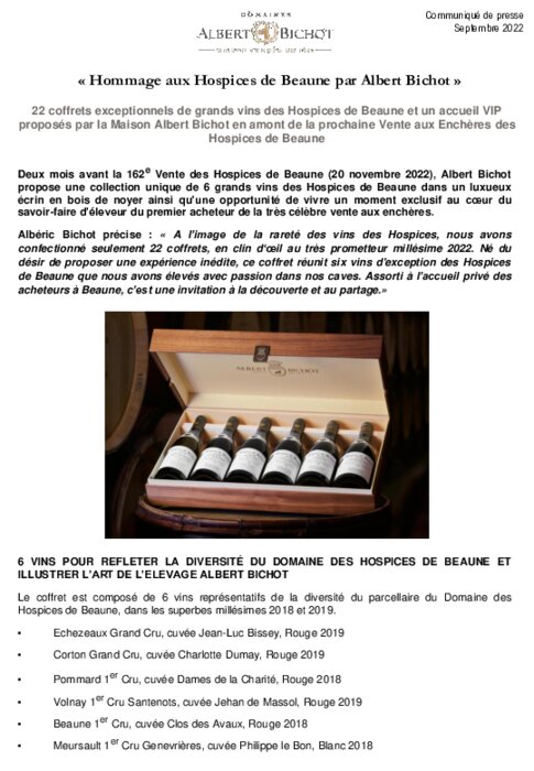 Vente des Hospices de Beaune avec la Maison Albert Bichot