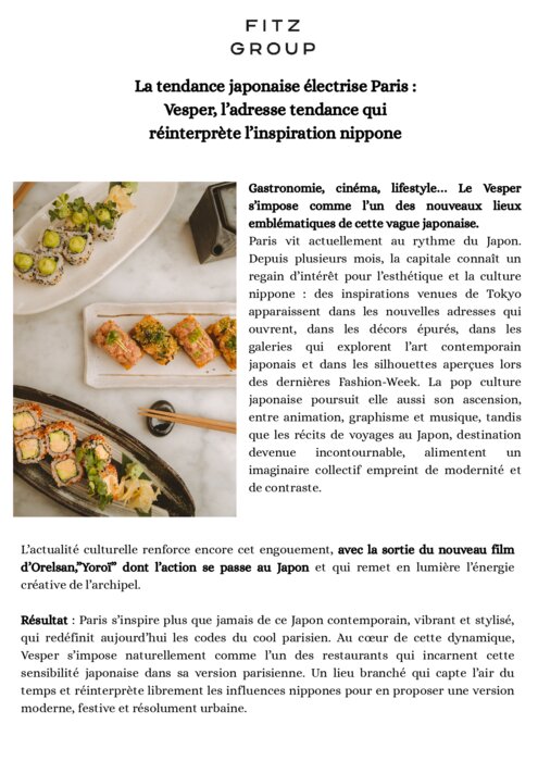 VESPER l'adresse qui réinterprète l'inspiration nippone
