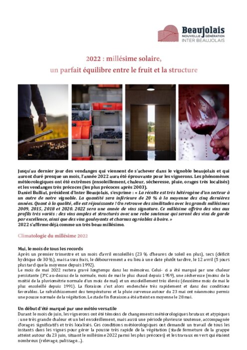 Vignoble beaujolais 2022 : millésime solaire, un parfait équilibre entre le fruit et la structure