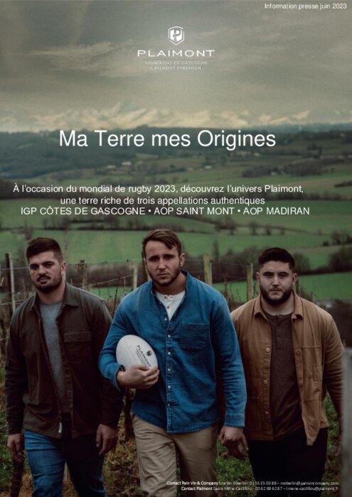 A l’occasion du mondial de rugby, Plaimont s’associe à Grégory Alldritt, Anthony Jelonch et Cyril Baille, qui deviennent ambassadeurs de 3 appellations authentiques : AOC Madiran, IGP Côtes de Gascogne et AOC Saint Mont.