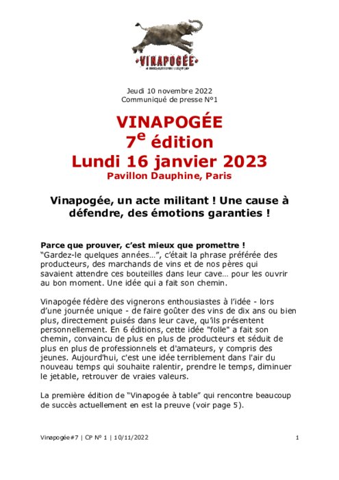 Métiers 10 novembre 2022 - 18:30 Vinapogée fédère des vignerons enthousiastes à l’idée - lors d’une journée unique - de faire goûter des vins de dix ans ou bien plus, directement puisés dans leur cave, qu’ils présentent personnellement. PDF (284 Ko) Télécharger