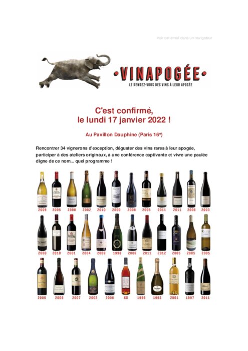 Métiers 07 janvier 2022 - 07:29 Rencontrer 34 vignerons d'exception, déguster des vins rares à leur apogée, participer à des ateliers originaux, à une conférence captivante et vivre une paulée digne de ce nom... quel programme ! PDF (405 Ko) Télécharger
