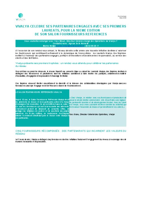 À l’occasion de son rendez-vous annuel, le Réseau dévoile cette année une nouvelle initiative destinée à valoriser les fournisseurs qui contribuent activement à la dynamique de l’écosystème : les Lauréats Vivalya. Ces trophées mettent à l’honneur des partenaires engagés, porteurs d’innovations et de démarches responsables, au service des clients et des territoires.