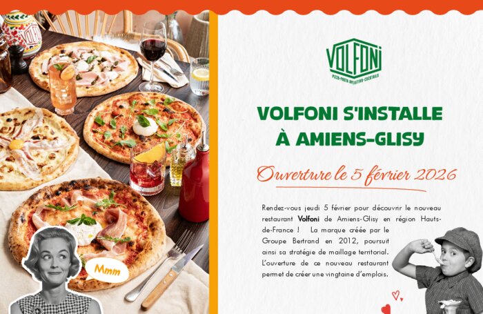 Le jeudi 5 février le nouveau restaurant Volfoni de Amiens-Glisy en région Hauts-de-France ouvre ses portes. La marque créée par le Groupe Bertrand en 2012, poursuit ainsi sa stratégie de maillage territorial. L’ouverture de ce nouveau restaurant permet de créer une vingtaine d’emplois.