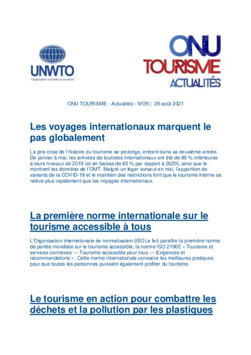 Métiers 26 août 2021 - 16:23 La pire crise de l’histoire du tourisme se prolonge, entrant dans sa deuxième année. De janvier à mai, les arrivées de touristes internationaux ont été de 85 % inférieures à leurs niveaux de 2019. PDF (205 Ko) Télécharger